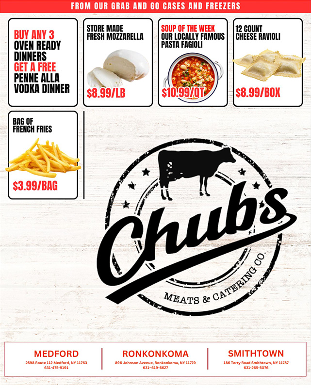 Chubs Meats is a 6x winner Best of Long Island Butcher Shop and a 3x winner of Best Caterer.